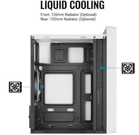 - Obsługuje chłodzenie cieczą z przodu iz tyłu obudowy