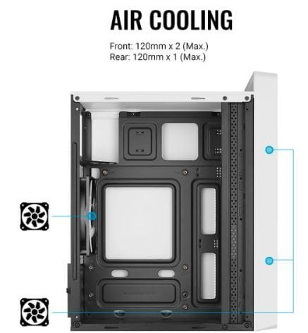 Ta wysokowydajna obudowa typu mini tower, zaprojektowana z myślą o wentylacji, zapewnia doskonały przepływ powietrza i wentylację, co przekłada się na lepszą wydajność chłodzenia. Wygodny uchwyt na górze walizki pozwala na łatwe pozycjonowanie i transport, dodając jednocześnie stylowy i niepowtarzalny wygląd. Obsługuje chłodzenie cieczą z przodu iz tyłu obudowy, zapewniając maksymalną wydajność chłodzenia.