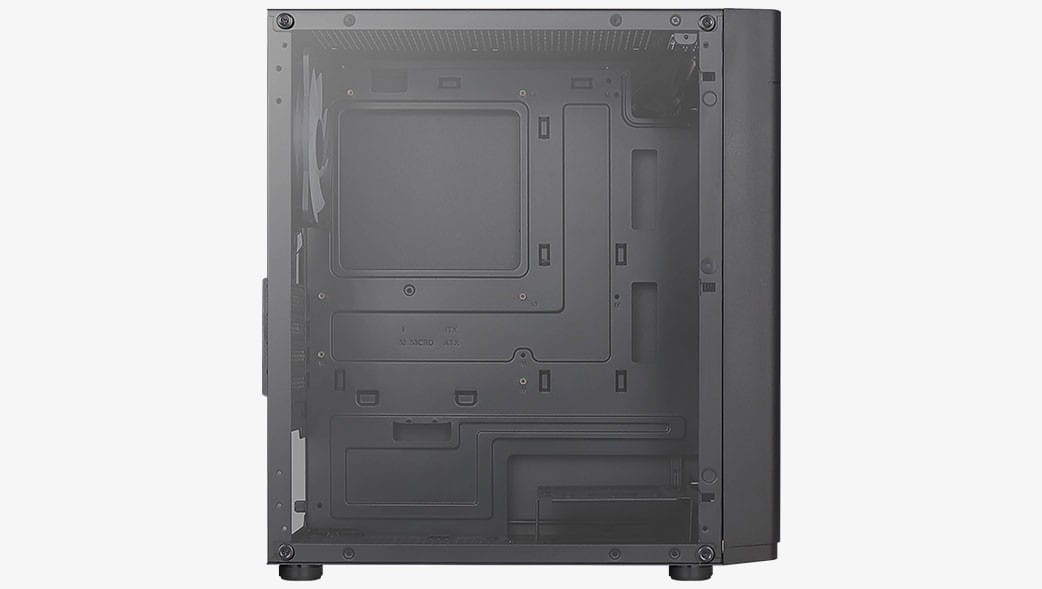 - Panel boczny z pełnego hartowanego szkła eksponuje wnętrze Twojego zestawu