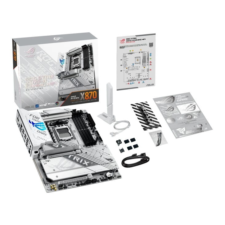 Ulepsz swój zestaw dzięki ROG Strix X870-A Gaming WiFi. Ta płyta główna, wyposażona w elegancką białą płytkę drukowaną i obsługująca procesory AMD Ryzen serii 9000, zapewnia moc i łączność potrzebną do zaawansowanych aplikacji AI. Dzięki obsłudze DDR5, pełnym możliwościom PCIe 5.0, dwóm portom USB4 i WiFi 7, jest to najlepsze połączenie stylu i wydajności.