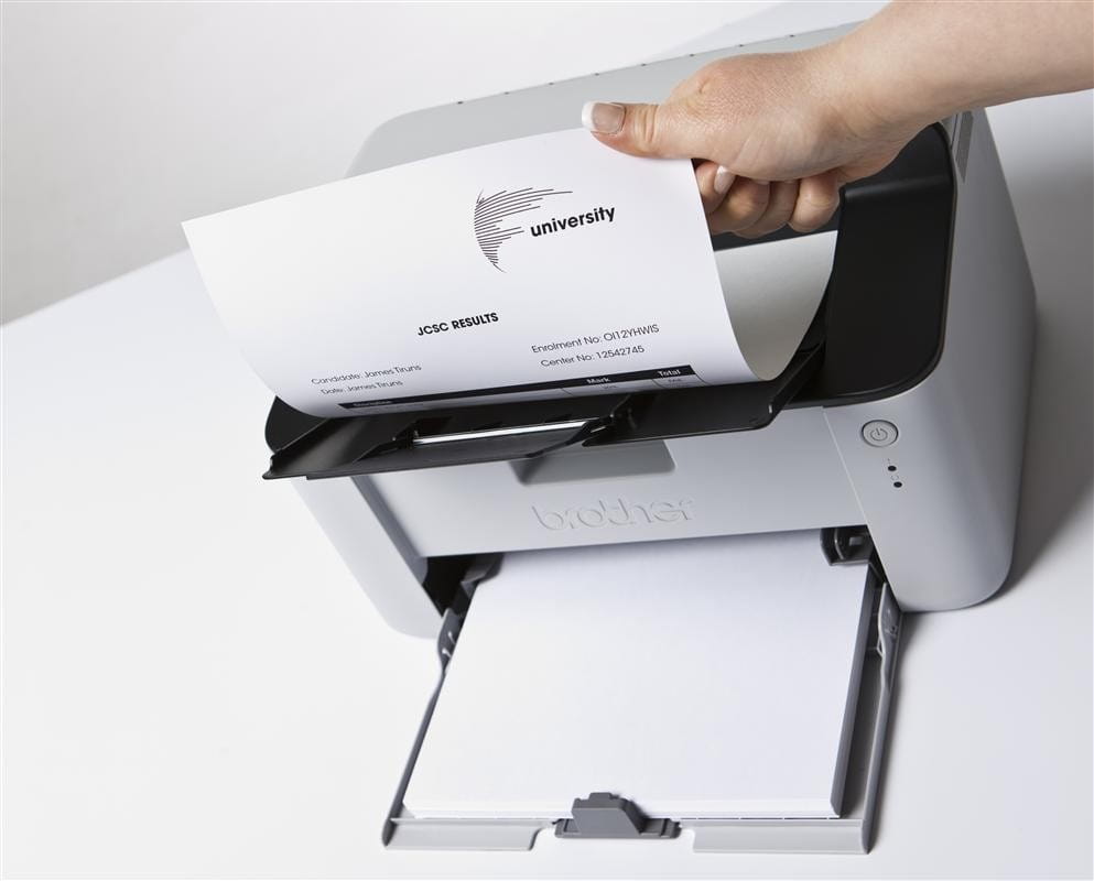 Niezwykle prosty w instalacji, model HL-1110E charakteryzuje się wysoką prędkością druku, a pierwsza strona jest gotowa w mniej niż 10 sekund. Drukarka została wyposażona w podajnik papieru na 150 arkuszy, dzięki czemu nie ma potrzeby częstego uzupełniania papieru. Dodatkowo HL-1110E jest kompatybilna z tonerami na 1 000 stron, które pozwalają na znacznie obniżenie kosztów eksploatacji. Toner startowy także pozwala na wydruk 1000 stron. Kompaktowe wymiary urządzenia (340szer. x 238gł. x 189wys. mm ) i niewielka waga wynosząca 4.5 kg, sprawiają, że bez problemu zmieści się ona na półce lub stanowisku pracy.