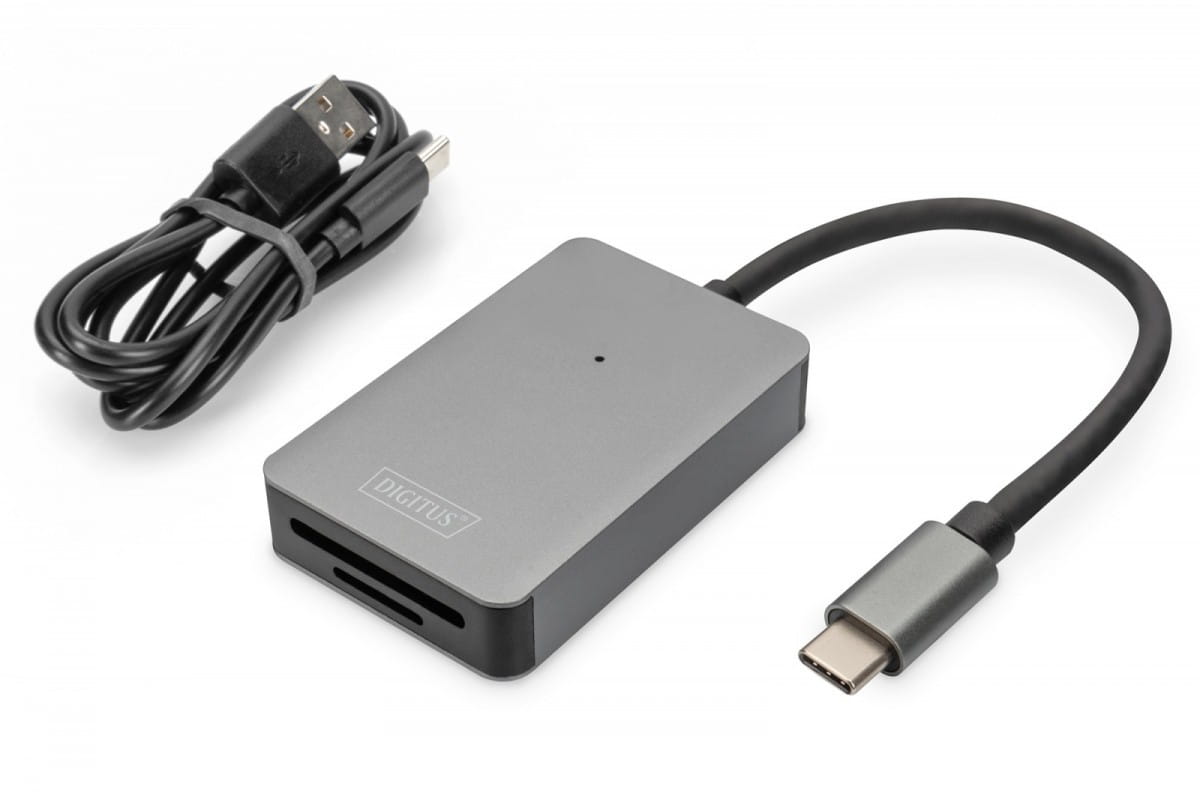 Digitus Czytnik kart USB-C, 2-portowy UHS-II SD4.0 TF4.0 High Speed, aluminiowy, Szary