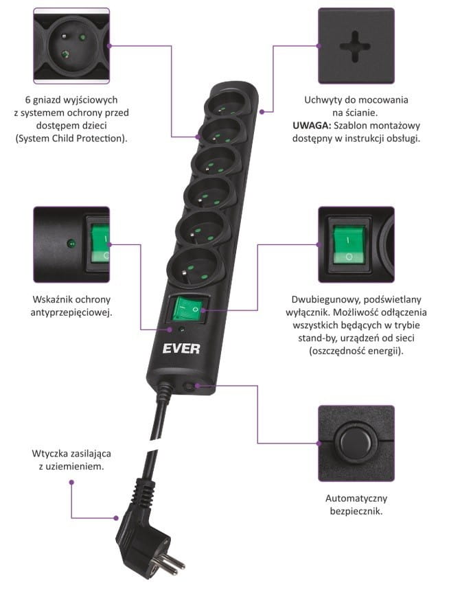 Nowa listwa antyprzepięciowa EVER OPTIMA to efektywne rozwiązanie dla skutecznego zabezpieczenia podłączonych urządzeń przed przepięciami, mogącymi pojawić się w domowej lub biurowej sieci zasilającej. Zapewnia skuteczną ochronę urządzeń takich jak komputery stacjonarne i mobilne, urządzenia peryferyjne oraz sprzęt RTV.