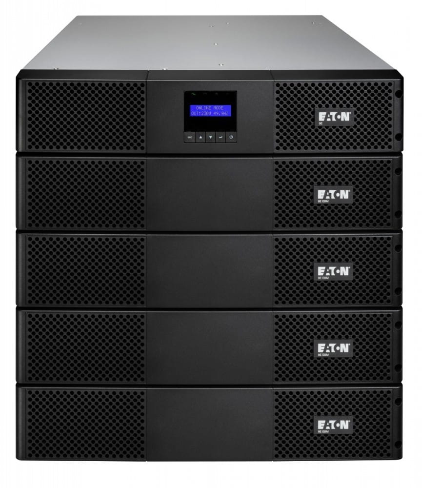 - Eaton 9E Rack stale monitoruje parametry zasilania i odpowiednio reguluje napięcie i częstotliwość dzięki topologii podwójnej konwersji online.