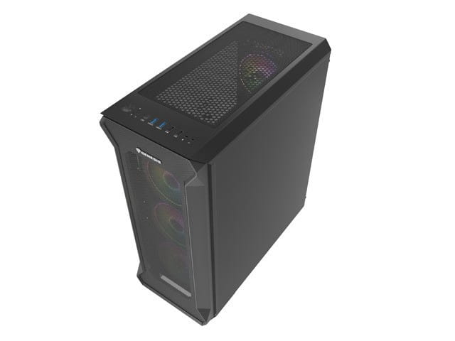 Na górze obudowy znajdują się aż 4 porty USB w tym 2 USB 3.0. W trosce o Twoją wygodę, umieściliśmy tam także dwa gniazda jack, byś mógł jak najbliżej wpiąć swoje słuchawki, czy też mikrofon. Dopełnienie stanowi przycisk odpowiedzialny za zmianę trybów bajecznego podświetlenia ARGB, by w danym momencie wyglądało tak jak chcesz.