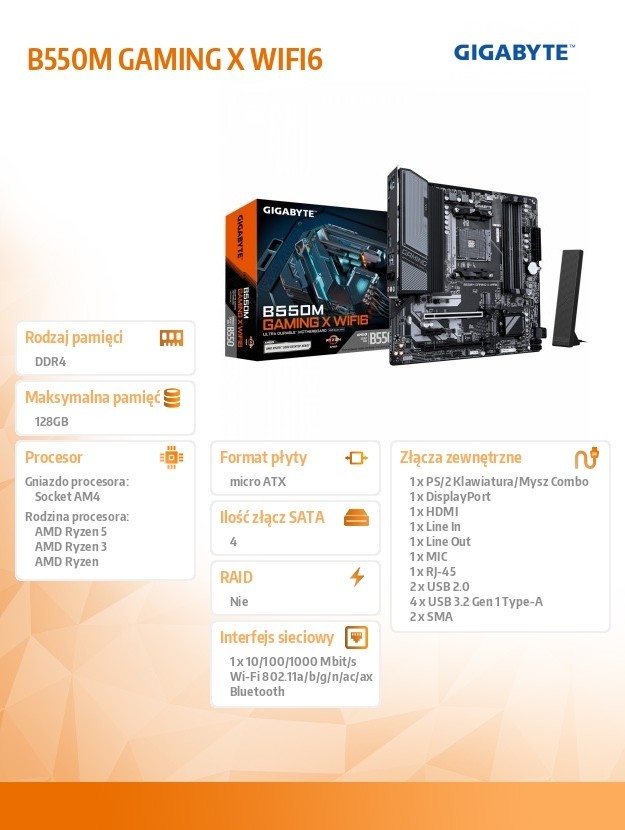Gigabyte Płyta główna B550M GAMING X WIFI6 4DDR4 HDMI/DP mATX