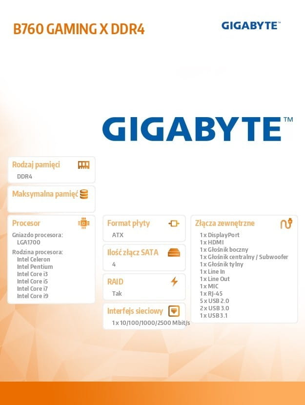 Gigabyte Płyta główna B760 GAMING X s1700 DDR4 ATX