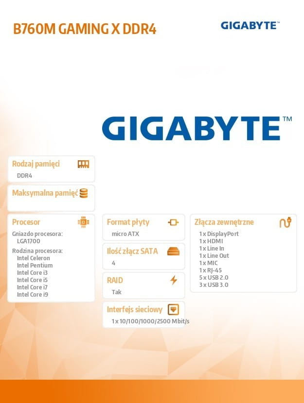 Gigabyte Płyta główna B760M GAMING X DDR4 s1700 DDR4 DP/HDMI mATX