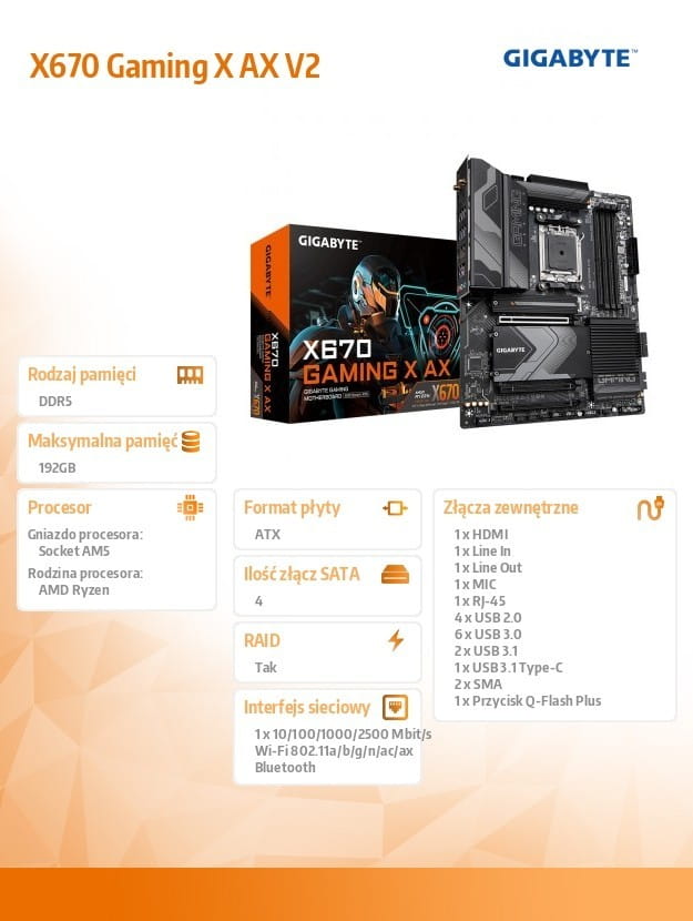 Gigabyte Płyta główna X670 Gaming X AX V2 AM5 4DDR5 HDMI M.2 ATX