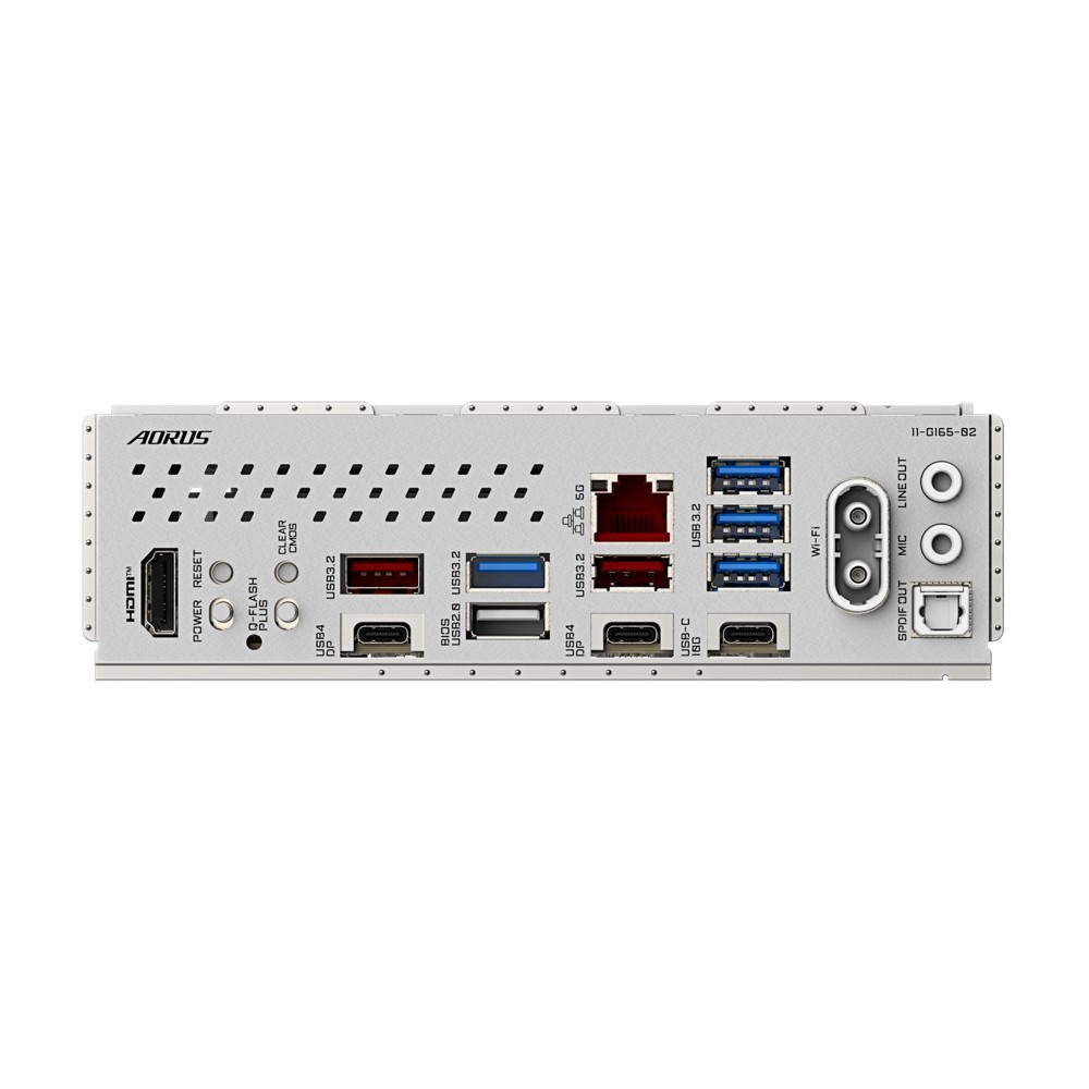 Złącza zewnętrzne: 1 x Przycisk Clear CMOS, 1 x Przycisk Q-Flash Plus, 1 x HDMI, 1 x Line Out (przód), 1 x MIC, 1 x RJ-45, 1 x S/PDIF, 1 x USB 2.0, 2 x SMA, 1 x USB 3.1 Type-C, 2 x USB4 Typ-C, 4 x USB 3.0, 2 x USB 3.2 Gen 2 Type-A
