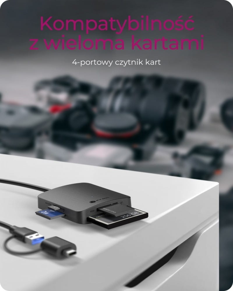 Podłączanie do komputera przez USB Type-A - Wyposażony w kabel USB Type-A do szybkiego transferu danych, ten czytnik zawiera również adapter USB Type-C. Ciesz się wszechstronnymi opcjami łączności dla większej wygody w pracy. Kompatybilność z wieloma kartami - Ten czytnik kart obsługuje szeroki zakres kart multimedialnych, w tym SD, Micro SD, MS i Compact Flash, z pojemnościami do 2 TB. Jest idealny do codziennych kopii zapasowych oraz profesjonalnych potrzeb przechowywania mediów. Kompaktowy design - O wymiarach zaledwie 67,98 mm x 56,98 mm x 15,6 mm, IB-CR302-CU3 jest lekki i przenośny, idealny dla fotografów i podróżników. Mimo niewielkich rozmiarów jest wystarczająco wytrzymały do częstego użytkowania i transportu. Zintegrowany kabel - Wbudowany kabel o długości 500 mm eliminuje potrzebę dodatkowych kabli, zapewniając schludne połączenie z komputerem. To rozwiązanie zwiększa mobilność, redukując bałagan i zapewniając, że zawsze masz potrzebne połączenie. Szeroki wybór kart - Kompatybilny z kartami SD (SD/SDHC/SDXC), Micro SD (Micro SD/Micro SDHC/Micro SDXC), MS (MS/MS Pro/MS Duo/MS Pro Duo) oraz Compact Flash, spełnia wszystkie Twoje potrzeby przechowywania. Kompatybilność z wieloma systemami operacyjnymi - Kompatybilny z systemami Windows, macOS i Linux, IB-CR302-CU3 umożliwia płynny dostęp i transfer danych między różnymi platformami. Ciesz się uniwersalnym dostępem do wszystkich swoich kart multimedialnych.