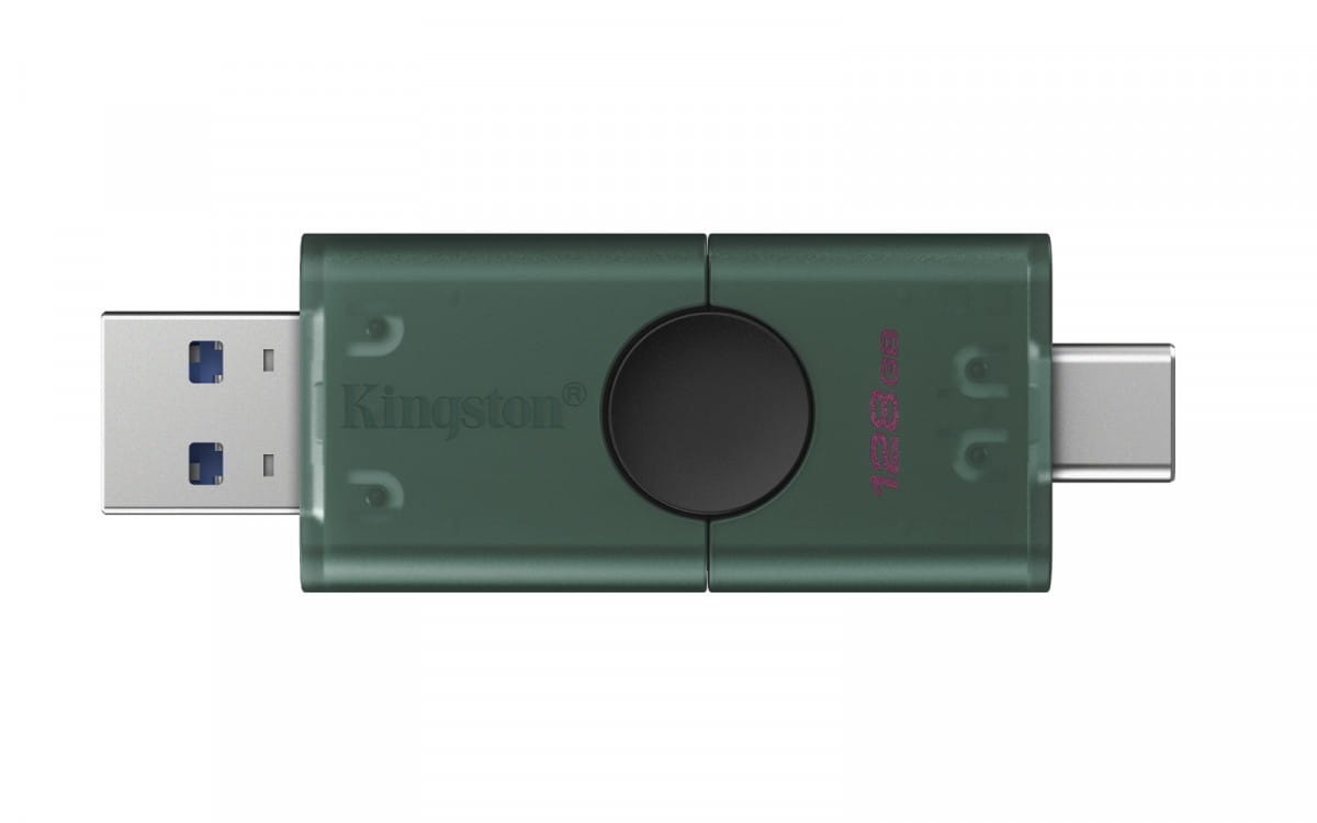 - Pamięć Kingston DataTraveler Duo jest wyposażona w dwa złącza USB, które umożliwiają podłączanie do portów USB Type-A i USB Type-C.