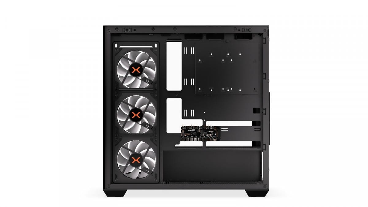 Obudowa Krux Exo posiada jeszcze jedną cechę, która wyróżnia ją na tle pokrewnych produktów. Jej konstrukcja pozwala na montaż płyt głównych typu hidden-connector. W takich płytach wszystkie wtyki - między innymi do kabli zasilających i wentylatorów - są przerzucone na tył. To zaproszenie do stworzenia czystej i estetycznej konfiguracji, na której będziesz z satysfakcją