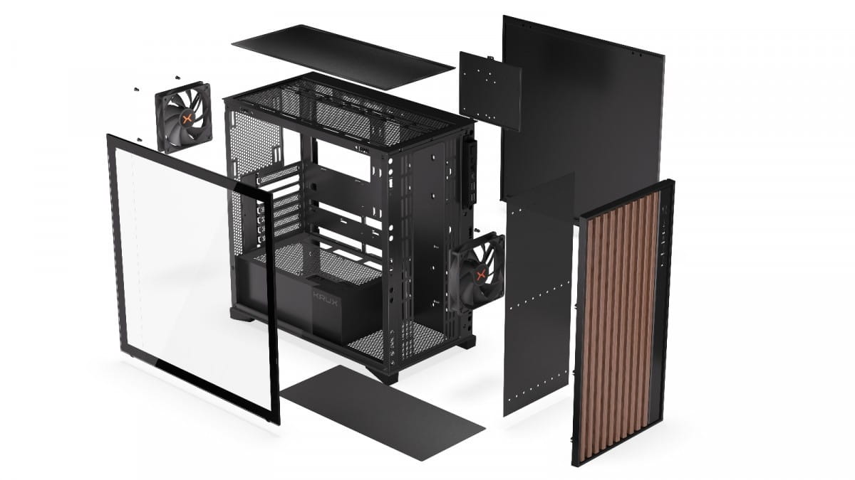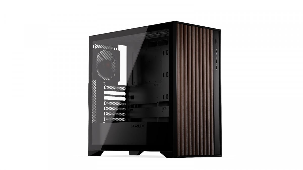 Krux Palum udowadnia, że obudowa bez podświetlenia RGB i krzykliwego designu nie musi być nudna. Od razu przykuwa wzrok szykownym frontem z ciemnymi drewnianymi listewkami, a przy tym nie kojarzy się z niemodną meblościanką jak u babci, tylko eleganckim, nowoczesnym wzornictwem. Co więcej, dzięki bocznemu panelowi z beznarzędziowym montażem będziesz mieć oko na swoje komponenty. Krux Palum idealnie wpasuje się w wystrój biura, salonu czy pokoju gracza.