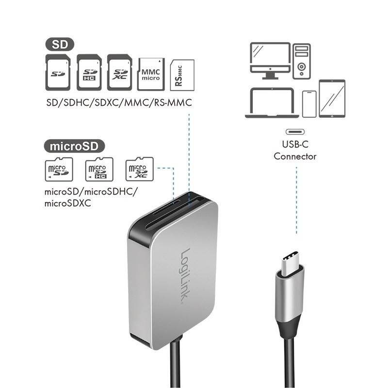 LogiLink Czytnik kart USB3.2 Gen 1, SD/microSD, USB-C