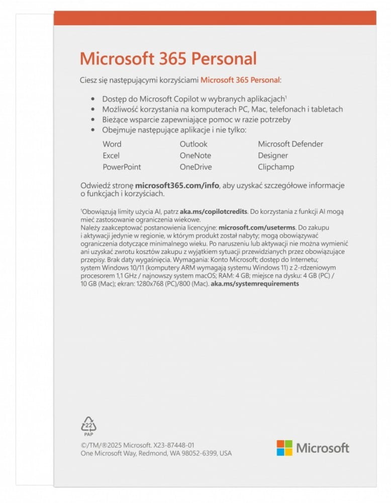 Microsoft M365 Personal PL 1Y 1U 5D Win/Mac EP2-32454