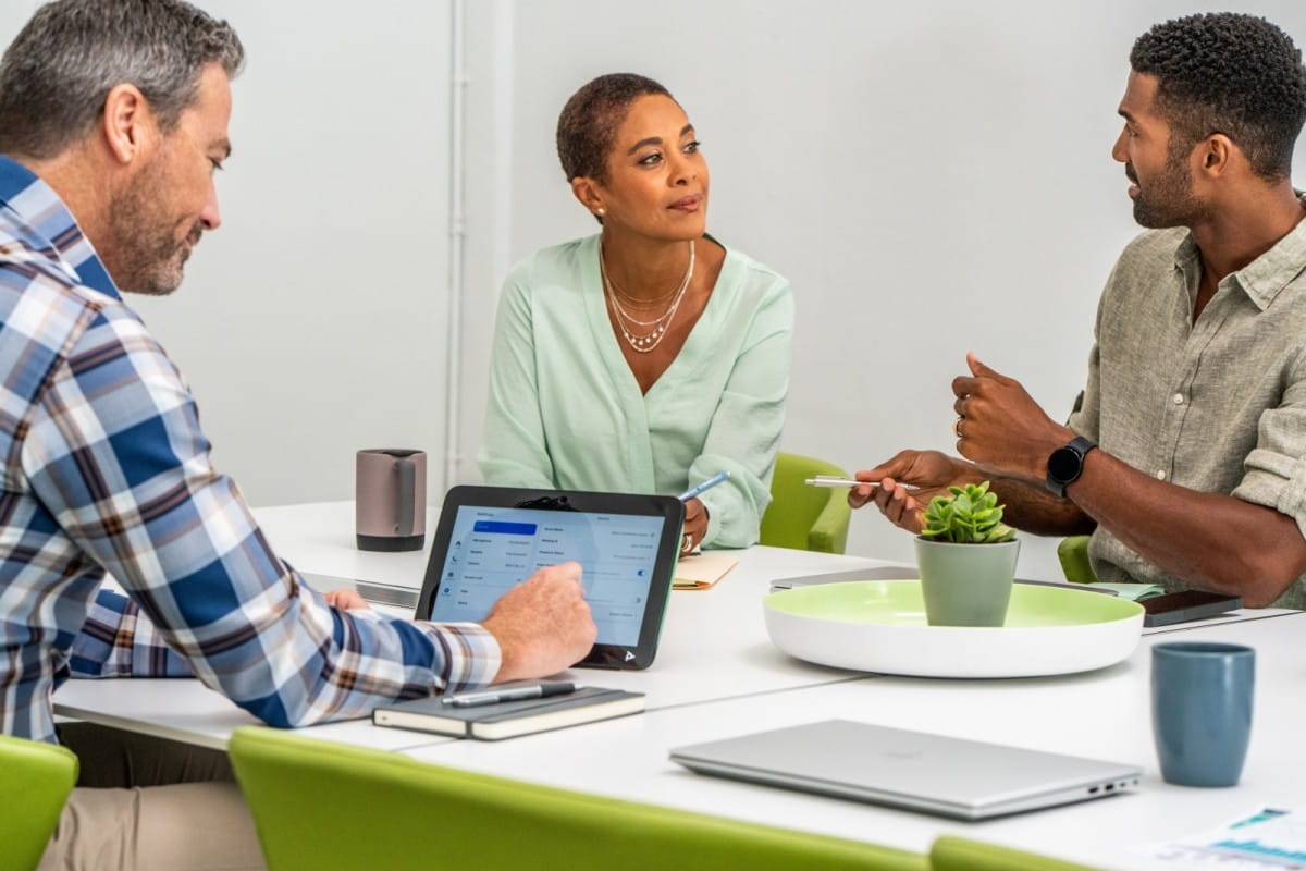 Dzięki niewiarygodnej wszechstronności umożliwia planowanie spotkań poza salą oraz obsługę spotkań i połączeń wideo w sali.