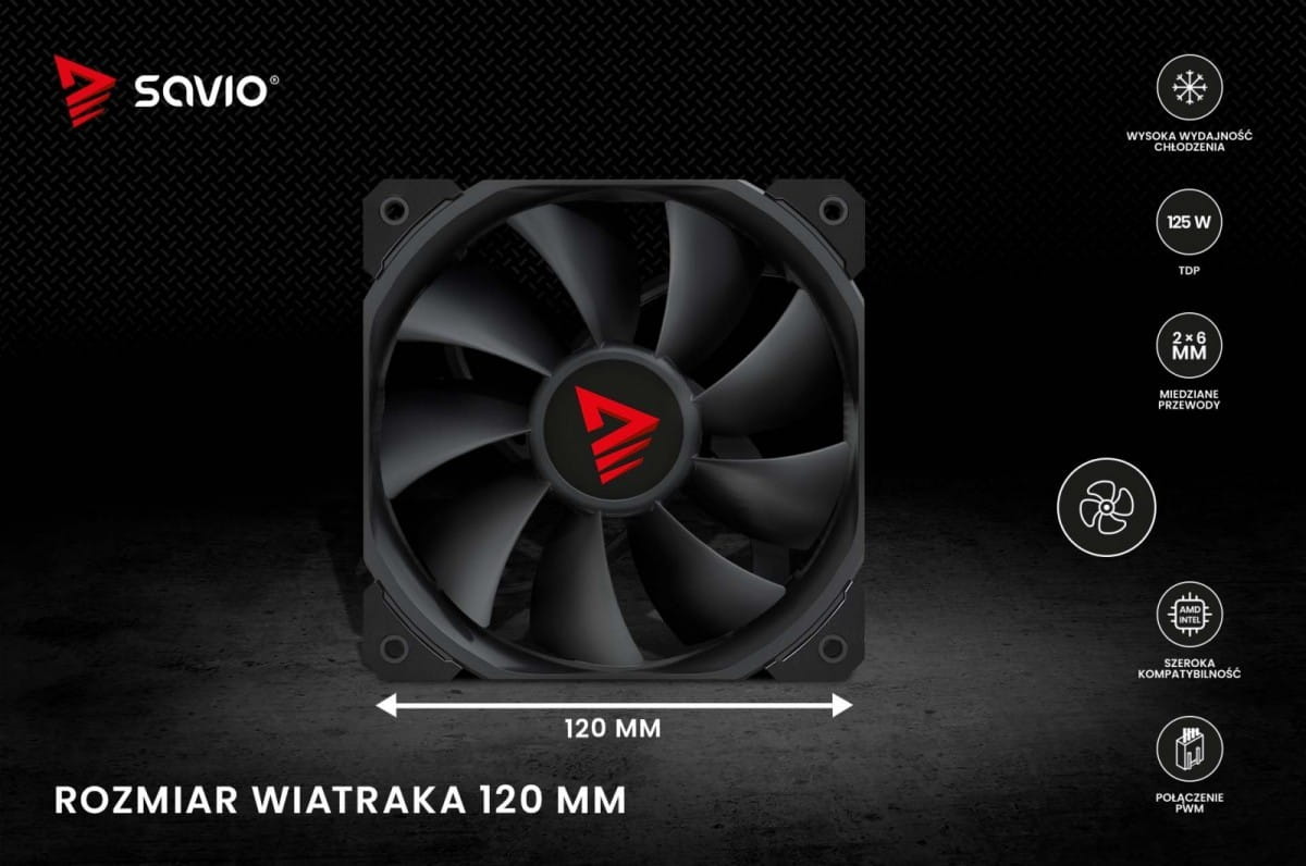 Akcesoria w zestawie: Chłodzenie procesora SAVIO FROST X2 Wentylator 120 mm Radiator Akcesoria montażowe Pasta termoprzewodząca Instrukcja obsługi