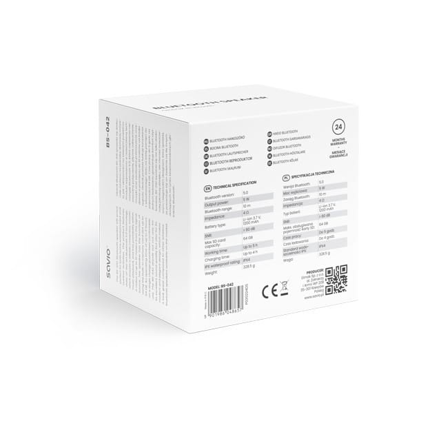 Akcesoria w zestawie: Głośnik Bluetooth SAVIO BS-042 Kabel ładowania USB-A (M) USB-C (M) Instrukcja obsługi