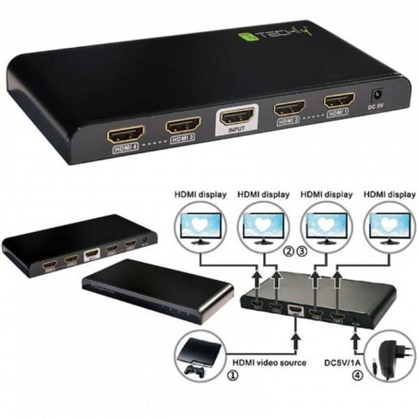 Techly Rozdzielacz-splitter AV HDMI 2.0 1/4 Ultra HD 4Kx2K 3D