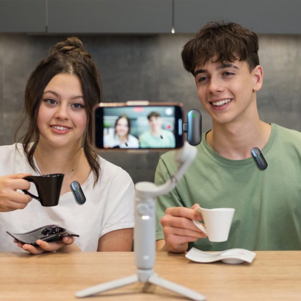 - Dwa bezprzewodowe mikrofony dla najwyższej jakości dźwięku