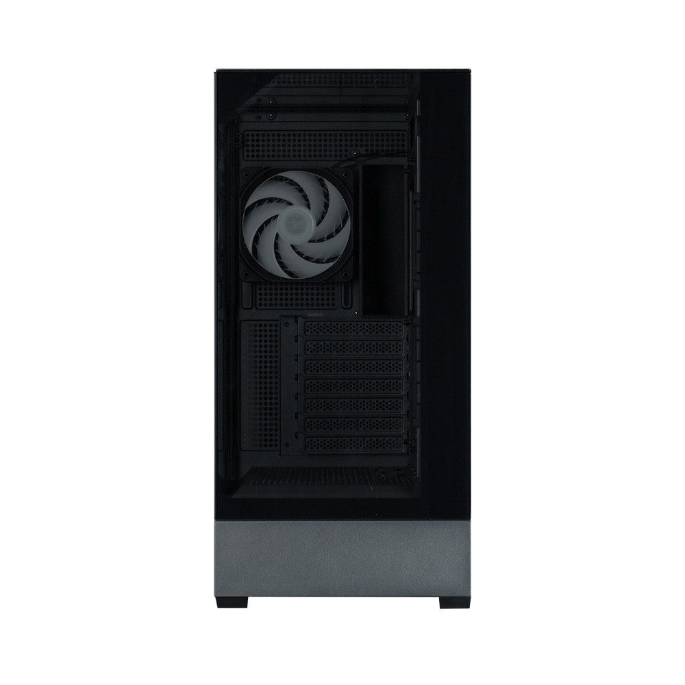 Nowy paradygmat w projektowaniu eliminuje ramę obudowy, zapewniając wrażenie otwartej przestrzeni i niezakłócony widok. Panele ze szkła hartowanego z przodu, boków i na górze tworzą jednolity wygląd.